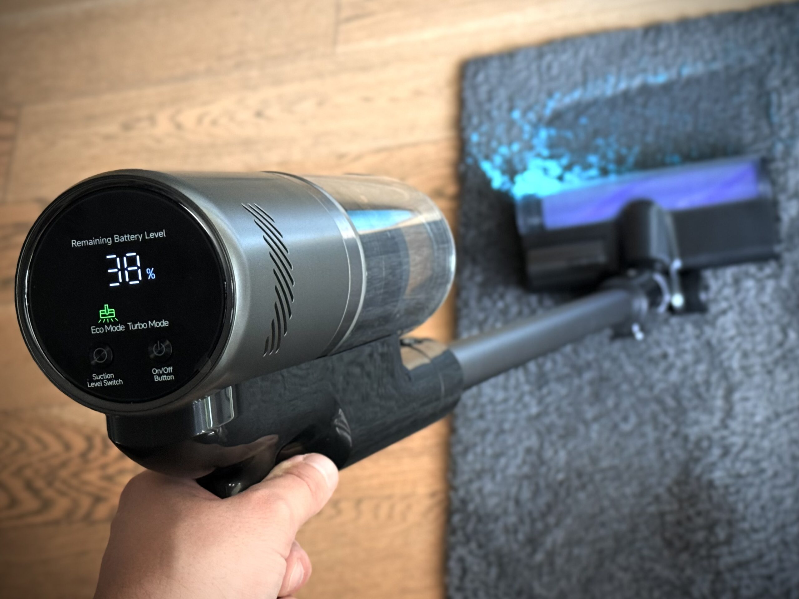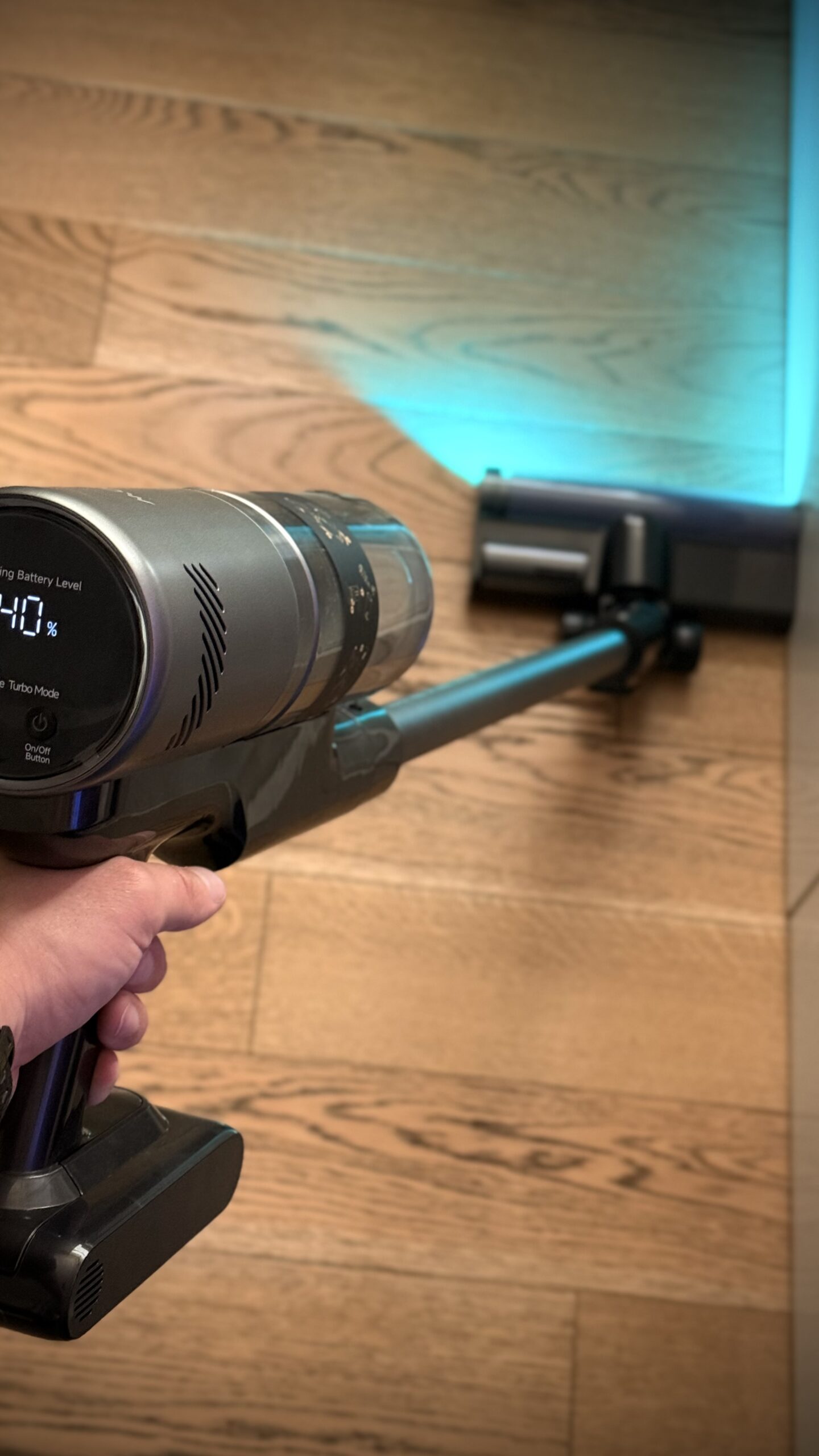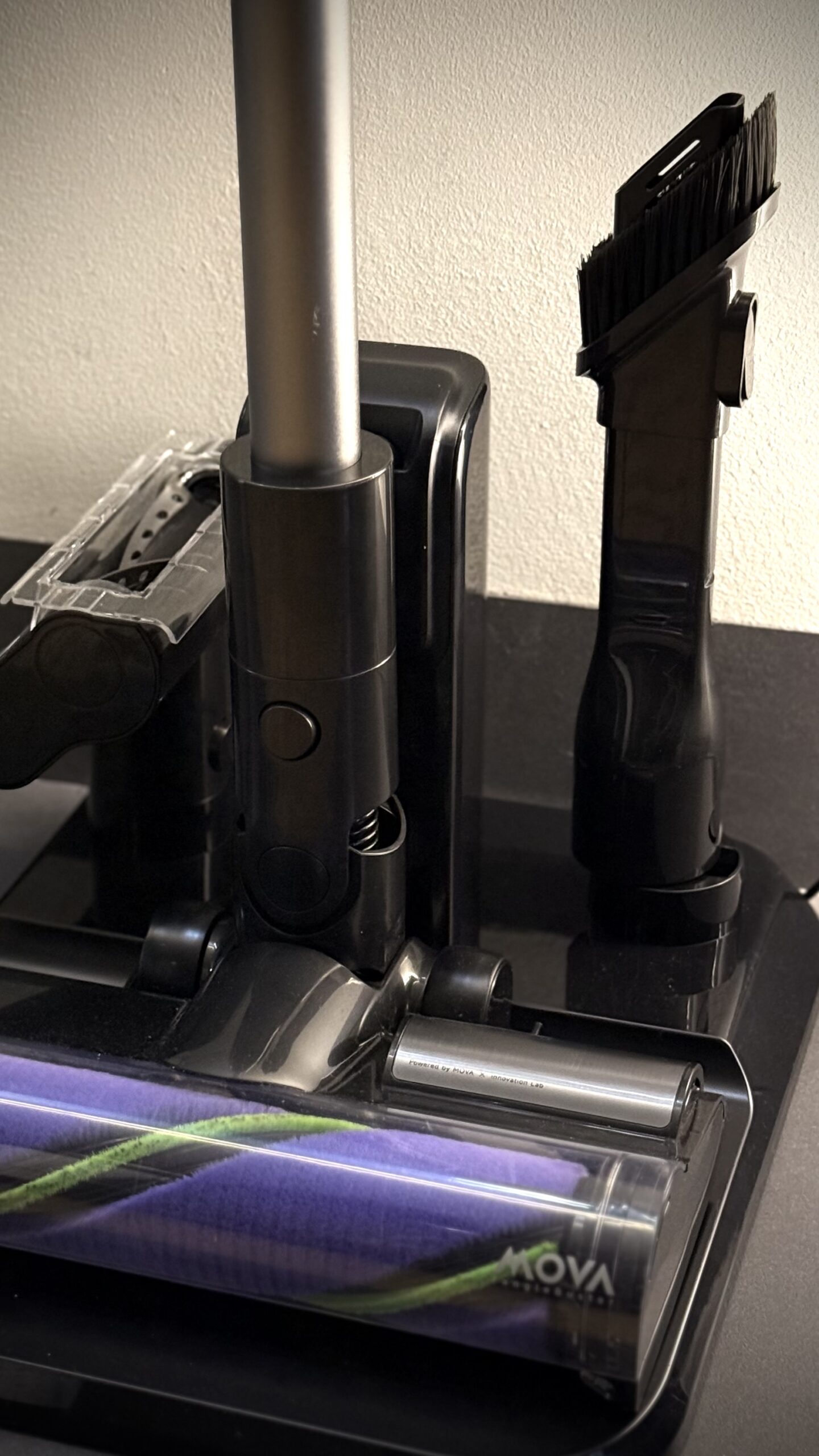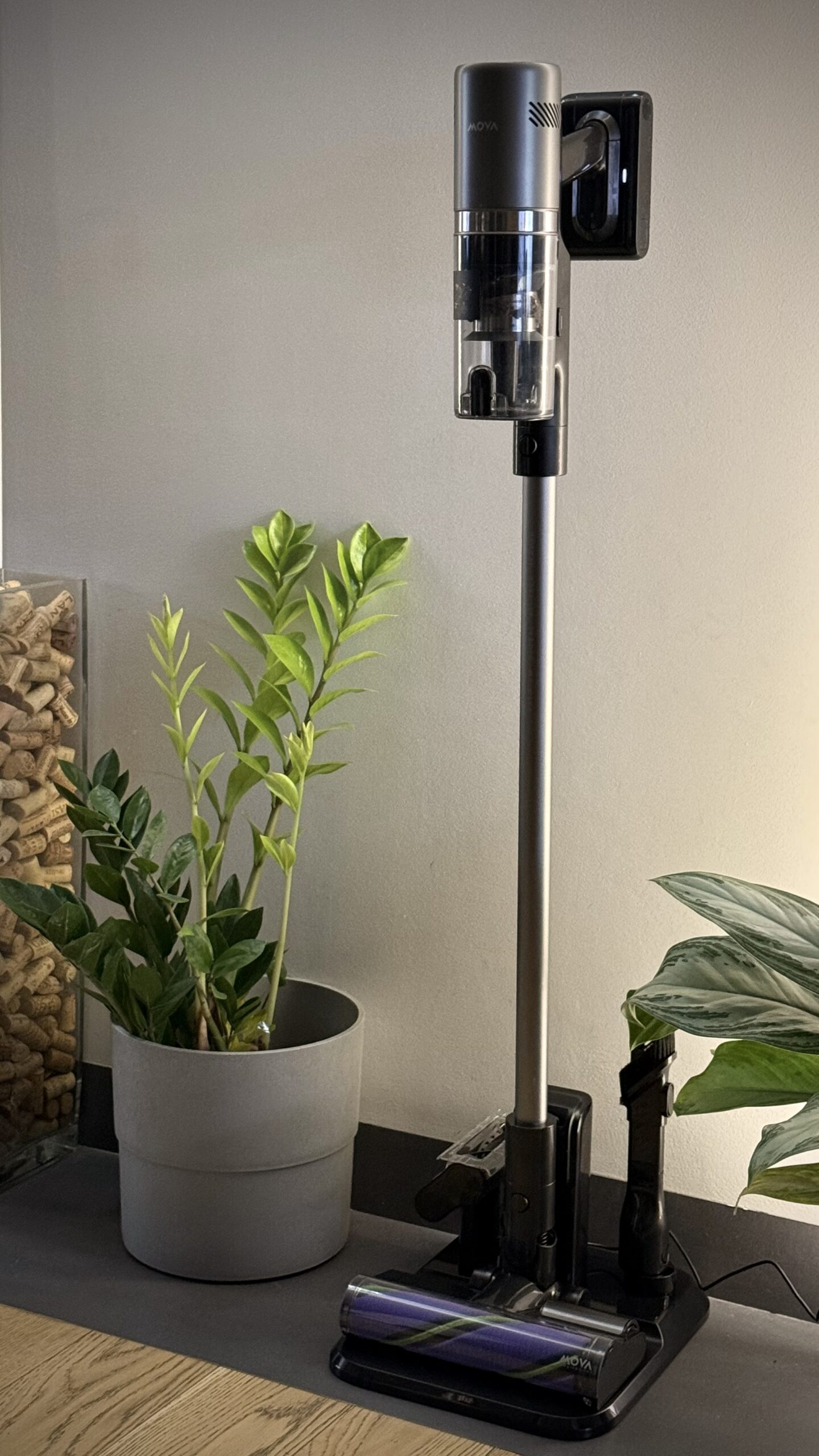 MOVA I10 to sprzęt, który celuje w złoty środek: ma być wystarczająco mocny, żeby nie zostawiać nic „na potem”, a przy tym lekki, poręczny i gotowy do pracy bez całej ceremonii kabli i przełączek. Na papierze wygląda to obiecująco – 120 AW siły ssania (ok. 28 000 Pa), czas pracy do 60 minut oraz korpus ważący 1,35 kg, więc nawet dłuższe ogarnianie nie męczy dłoni. Po kilku dniach w domu widać, że to właśnie ta równowaga decyduje o odbiorze urządzenia: nie muszę planować sprzątania, po prostu biorę I10, wciskam start i jadę – a sprzęt robi swoje bez dąsów i przystanków na ładowarkę.