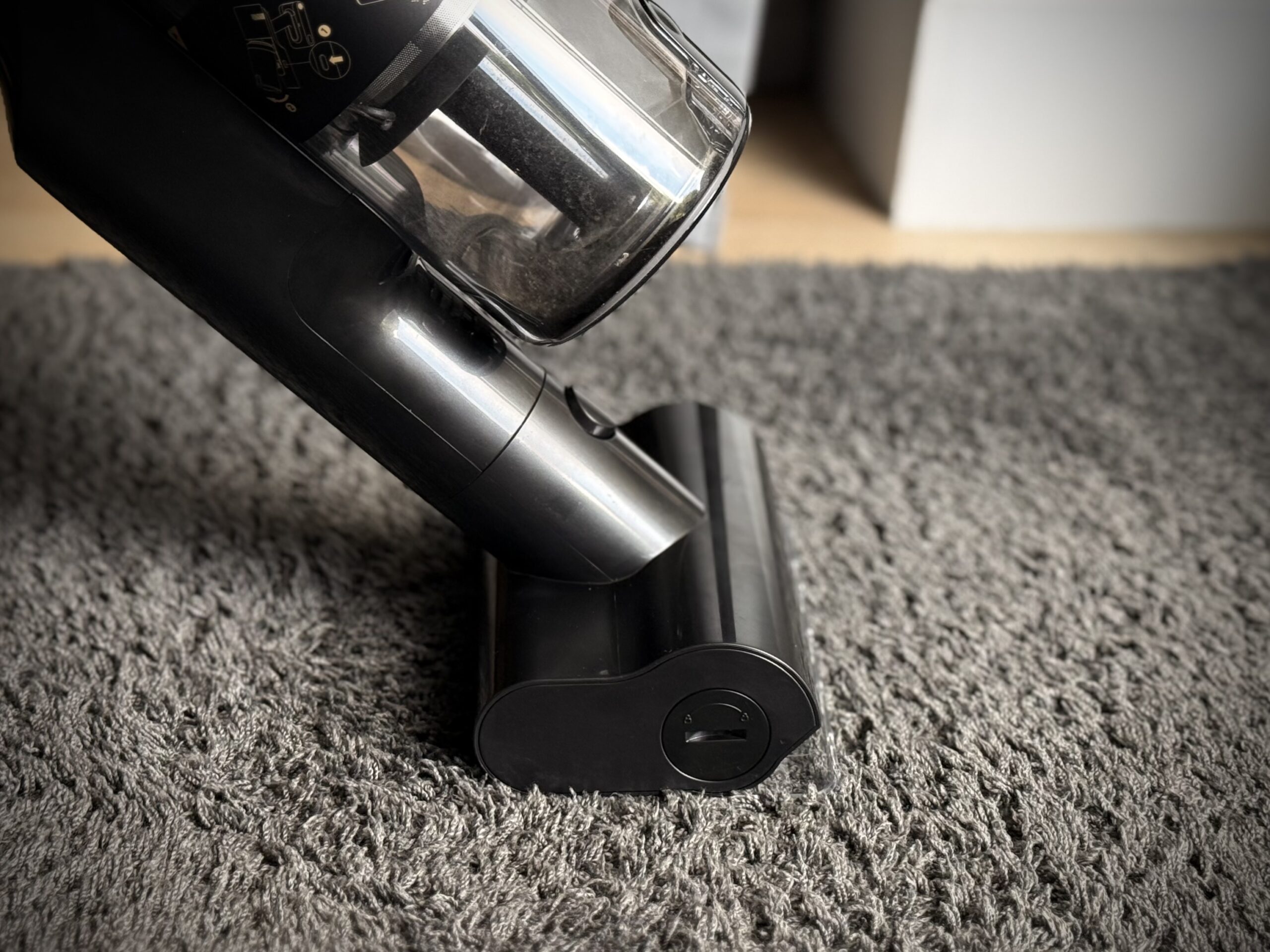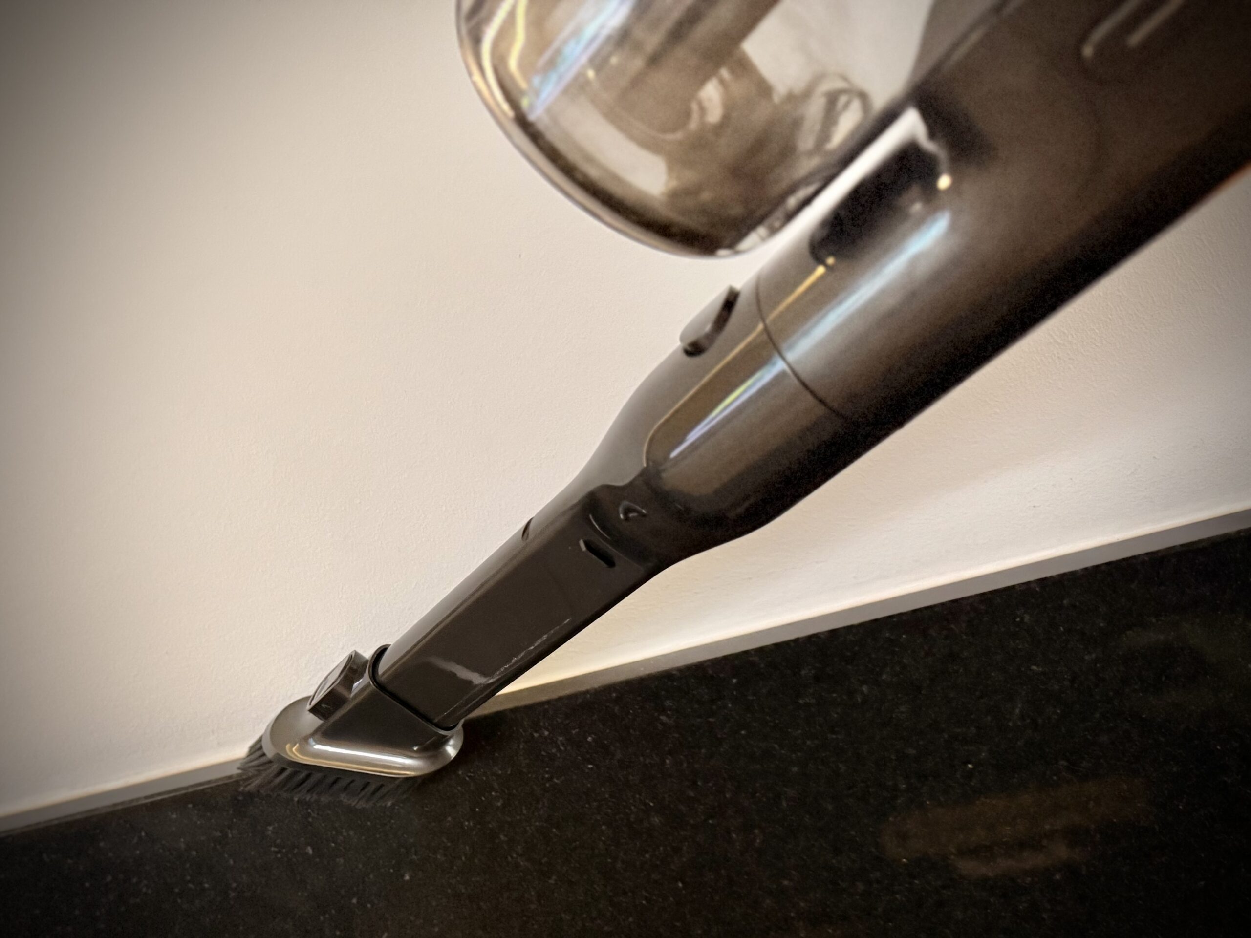 Deklarowane 60 minut to wynik dla końcówki szczelinowej w Eco; ze szczotką podłogową producent podaje do 40 minut w tym samym trybie. W praktyce daje to komfort ogarnięcia standardowego mieszkania bez kalkulowania przejazdów – tym bardziej że bateria ładuje się w około 3,5 godziny, więc nawet przy intensywnym weekendowym sprzątaniu łatwo „zamknąć pętlę”. Jeśli wchodzisz w Turbo, licz się z szybszym spadkiem czasu pracy, ale też z faktem, że gęstsze zabrudzenia znikają na raz – bez powtórek.